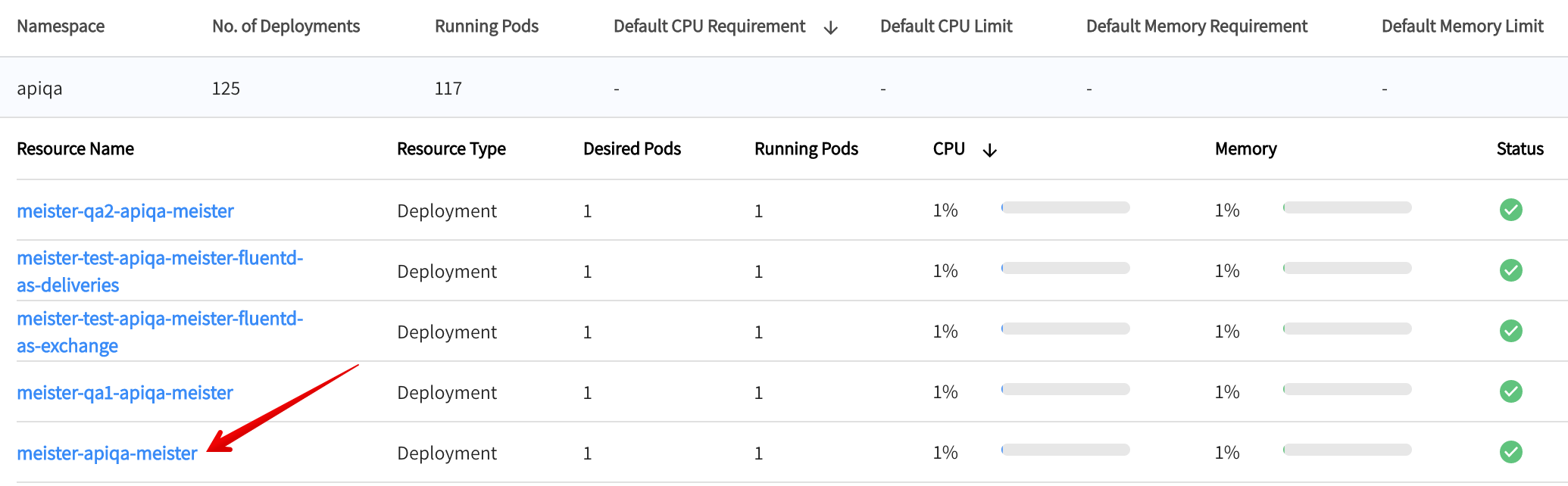 To deep dive into a specific deployment and review resource suggestion, click on the requested deployment.